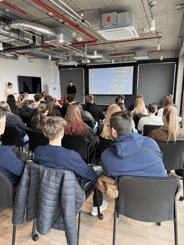 Naši kolegové z HR, mzdového oddělení a klientské účtárny si pro ně připravili zajímavou přednášku o tom, jak to u nás funguje a co obnáší práce v účetnictví. Zároveň ukázali, jak se tento obor v posledních letech proměnil díky automatizaci a moderním technologiím.